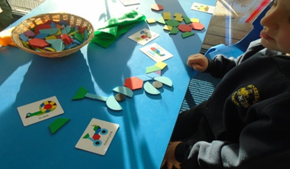 We also explore other mathematical concepts such as 2D and 3D shapes, naming them and describing their properties, and making arrangements and repeating patterns with them. The children are taught about measures, such as length and weight, and areas in the provision support them to explore these concepts, such as the craft table or sand/water area.